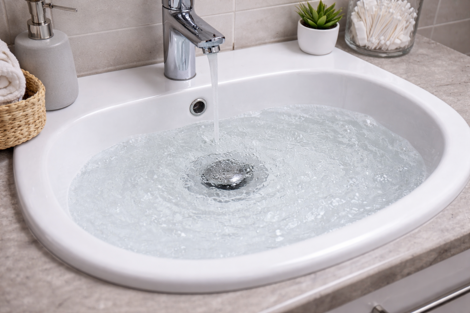 Slow-draining water in the bathroom sink
